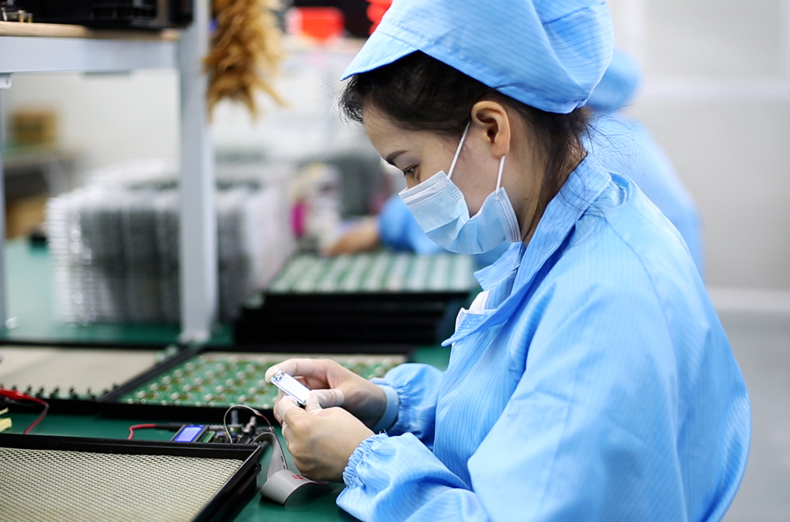 绘晶科技在液晶屏生产现场很重视静电防护,空调无尘生产车间,员工一律穿防静电服,防静电鞋,进入现场前要先放静电。以免人体自带静电或者移动过程中产生静电。作业员应严格按照规程作业,严禁人体任何部位直接接触屏、模组中的接口、引脚等金属导电部分。此外,保持生产场地空间有合理的温度和湿度,温度控制在28度左右,湿度在60%左右。这样整个空间就形成了以空气为导电体的放电体。这样在这个空间里各种摩擦运动产生的静电就会得到及时有效的释放。
