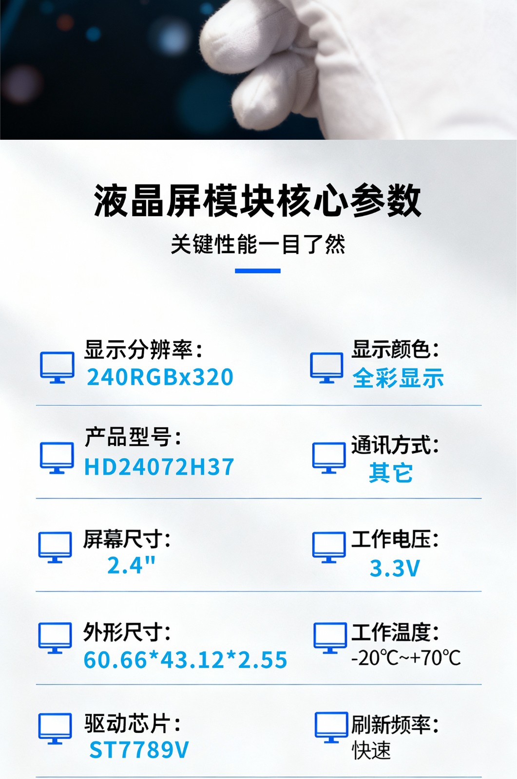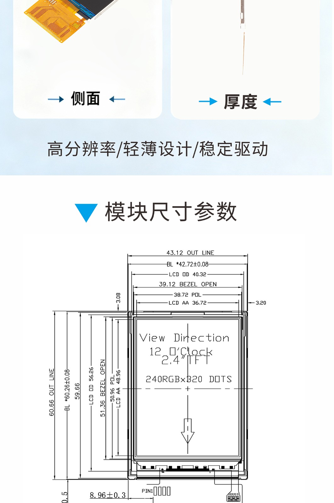 2.4TFT液晶屏模块高清显示TFT24072H37 |