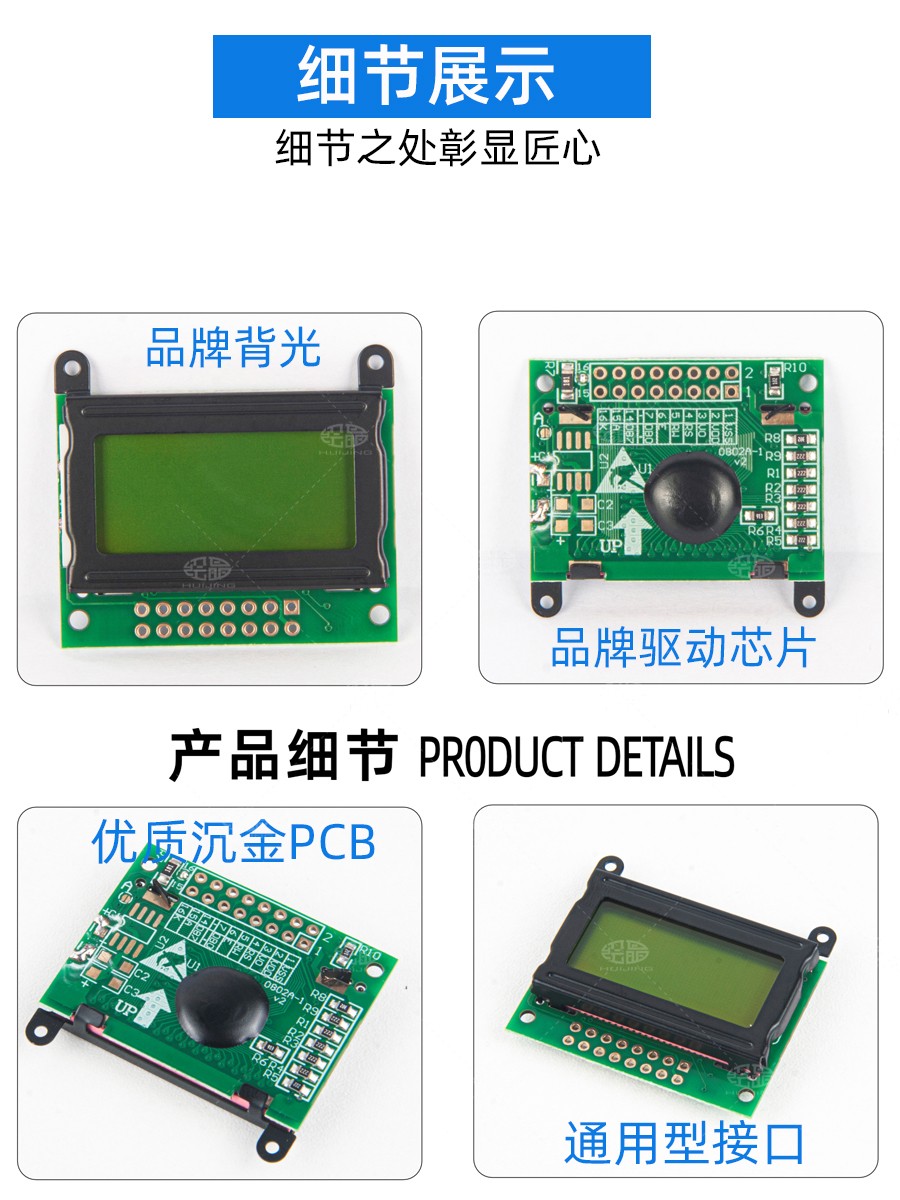 0802液晶模块可选5v和3.3v超薄黄绿屏 |
