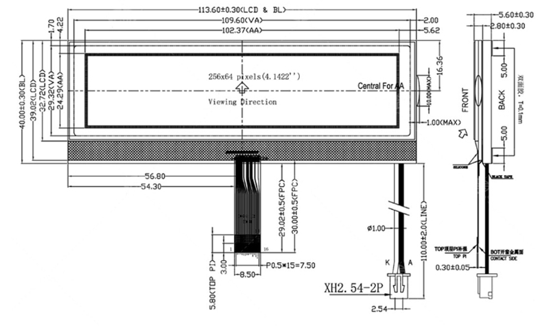 模块外形尺寸:113.60(W)X40(H)X5.60(T)MM