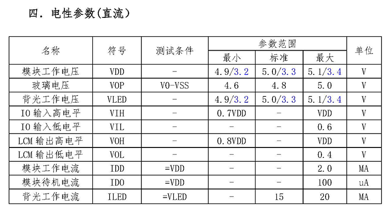 工作电压有3.3V和5V供选择,只能选择其中一种电压使用提供三种与 WPU 通讯方式:4位、8位并口,串口通讯(默认出厂未固定,用户自己控制PSB来选择)